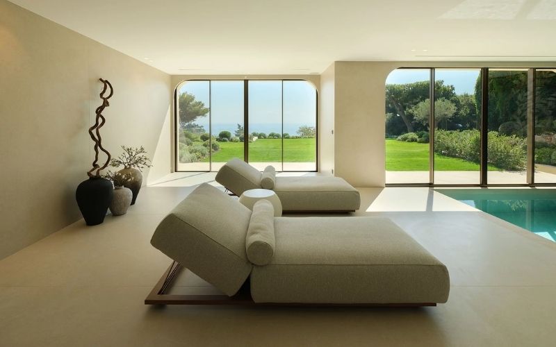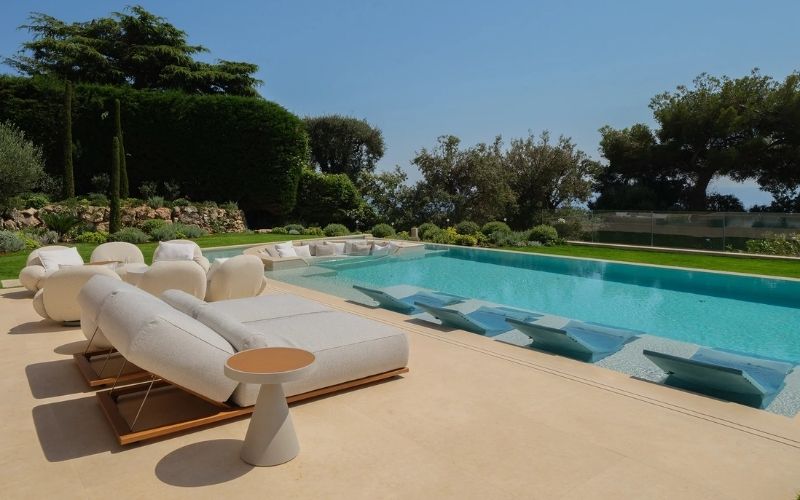 Residences - Villa Azur Living Area Belt coffee table Outdoor Area Claud Open Air Bongo Open Air Cone Open Air Project: Maison MAJUPhoto: Marion Butet StudioPartner: Jippi Design By Meridiani