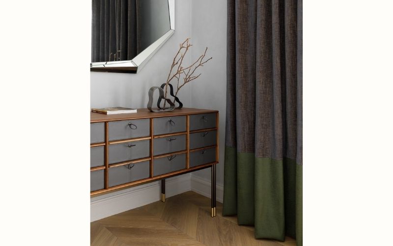 For the bedroom, pieces from the Bayus collection continue to act as a common thread, with the bedside tables and chest of drawers combining functionality and sophistication. Completing the design of the room is the Aida headboard.