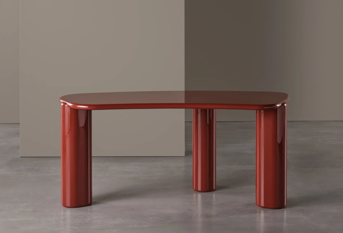 Henry is a three-legged writing desk, a visually sinuous table with a soft silhouette that, at the junction point between legs and top, echoes the design of the Frank tables and coffee tables.